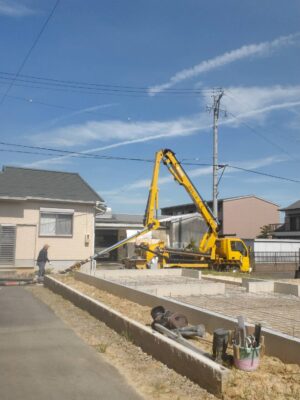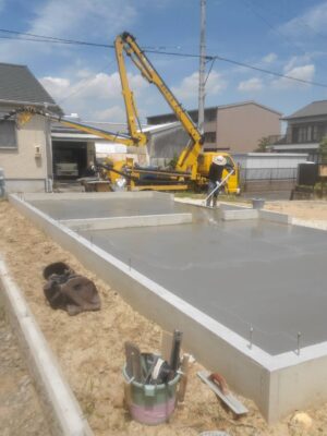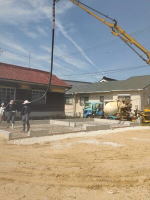 さて、本日は朝から基礎の土間打ちが始まっております☆