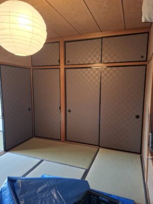 さて、本日はタイルカーペットと襖の交換が完了いたしました。